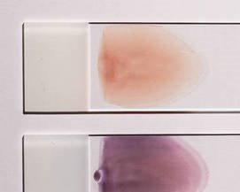 - Cabeza: Es la zona inicial de la extensión. Si atendemos a las características que debe presentar un frotis sanguíneo ideal, la cabeza será la zona con mayor grosor. De hecho, los hematíes pueden estar formando más de una capa.